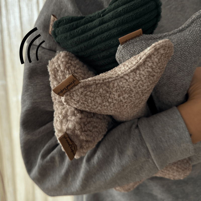 Kostki wykonane są z trwałych i bezpiecznych tkanin. W zabawce zastosowaliśmy szeleściki i piszczałkę, dzięki którym zabawka będzie dla psa bardzo atrakcyjna ( przetestowane 😉 ) oraz zapewni dodatkową stymulację.